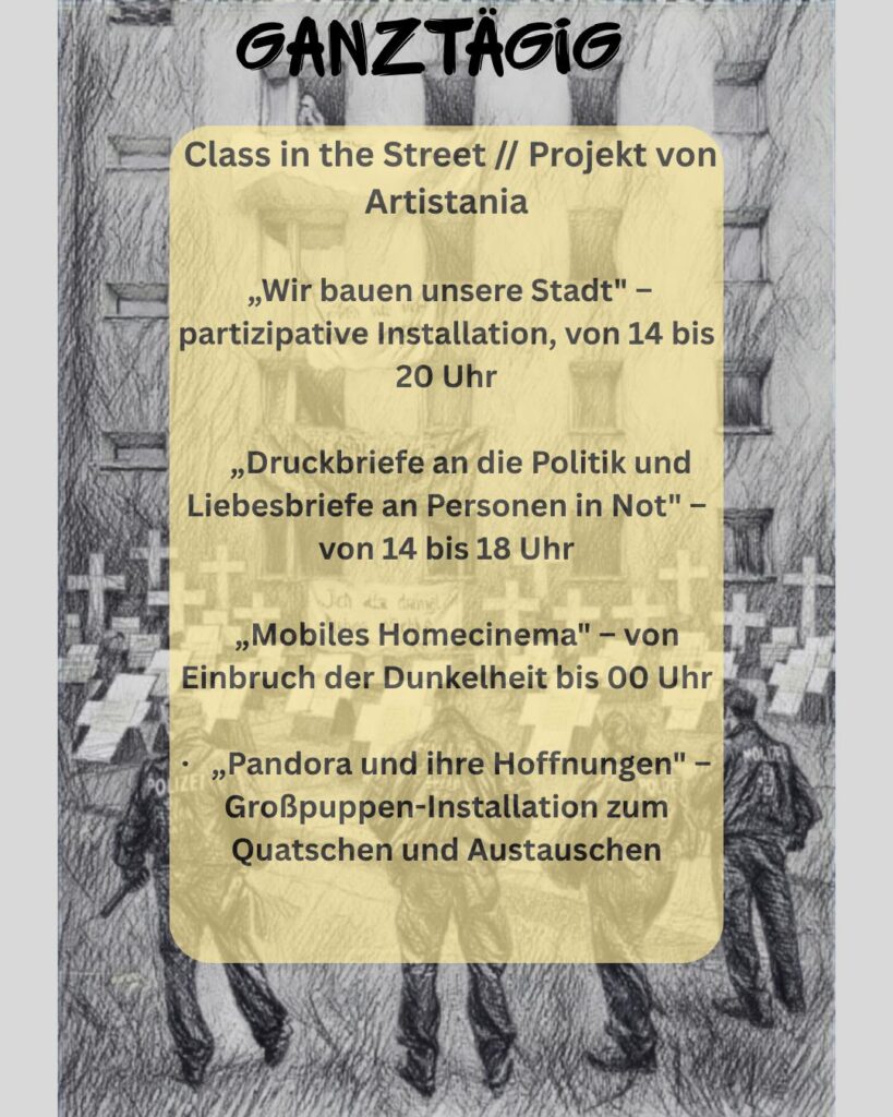 Die Kürzungen im sozialen Bereich und die vielen schrecklichen Krisen, Kriege etc. verschleiern den Blick auf das was möglich wäre. Eine Wohnraumversorgung für Alle unabhängig vom Aufenthaltsstatus anstatt die Vertreibung von Menschen aus dem öffentlichen Raum sowie eine Unterstützung die gut ausfinanziert sein muss könnte dafür sorgen, dass wirklich Obdachlosigkeit beendet werden könnte und nur die, die Freiräume nutzen wollen diese auch bekommen. Die parallel im Roten Rathaus stattfindende Ministerpräsidentenkonferenz Ost im Beisein des Bundeskanzlers ist eine willkommene Gelegenheit im Rahmen des Bundes- und Weltweitem Housing Action Days auf die Situation und Lösungen der Problemlagen von Obdach- und Wohnungslosen hinzuweisen.